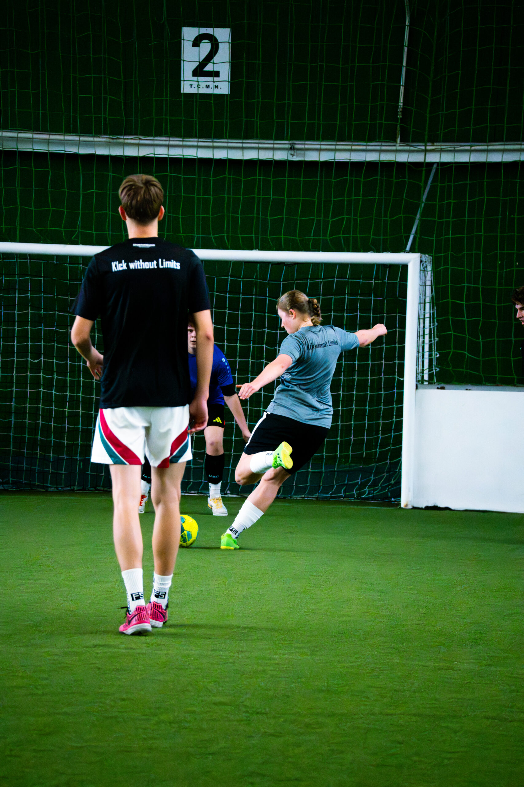„K1ck Without Limits“ heißt dieses Turnier: „Kicken ohne Grenzen“. Im übertragenen Sinne gilt das am zweiten Turniertag ganz besonders. Denn jetzt werden auch die nationalen Grenzen durchbrochen. An diesem Sonntagvormittag spielen alle Kinder und Jugendlichen noch einmal ein Turnier, diesmal aber in international gemischten Teams. Nun kicken also Deutsche, Ungarn, Polen und Schweden zusammen, die Verständigung läuft mal mit den Händen, mal auf Englisch – aber so viel zu reden gibt es auf dem Feld ja eigentlich auch nicht. Fußball funktioniert auch ohne große Worte.
