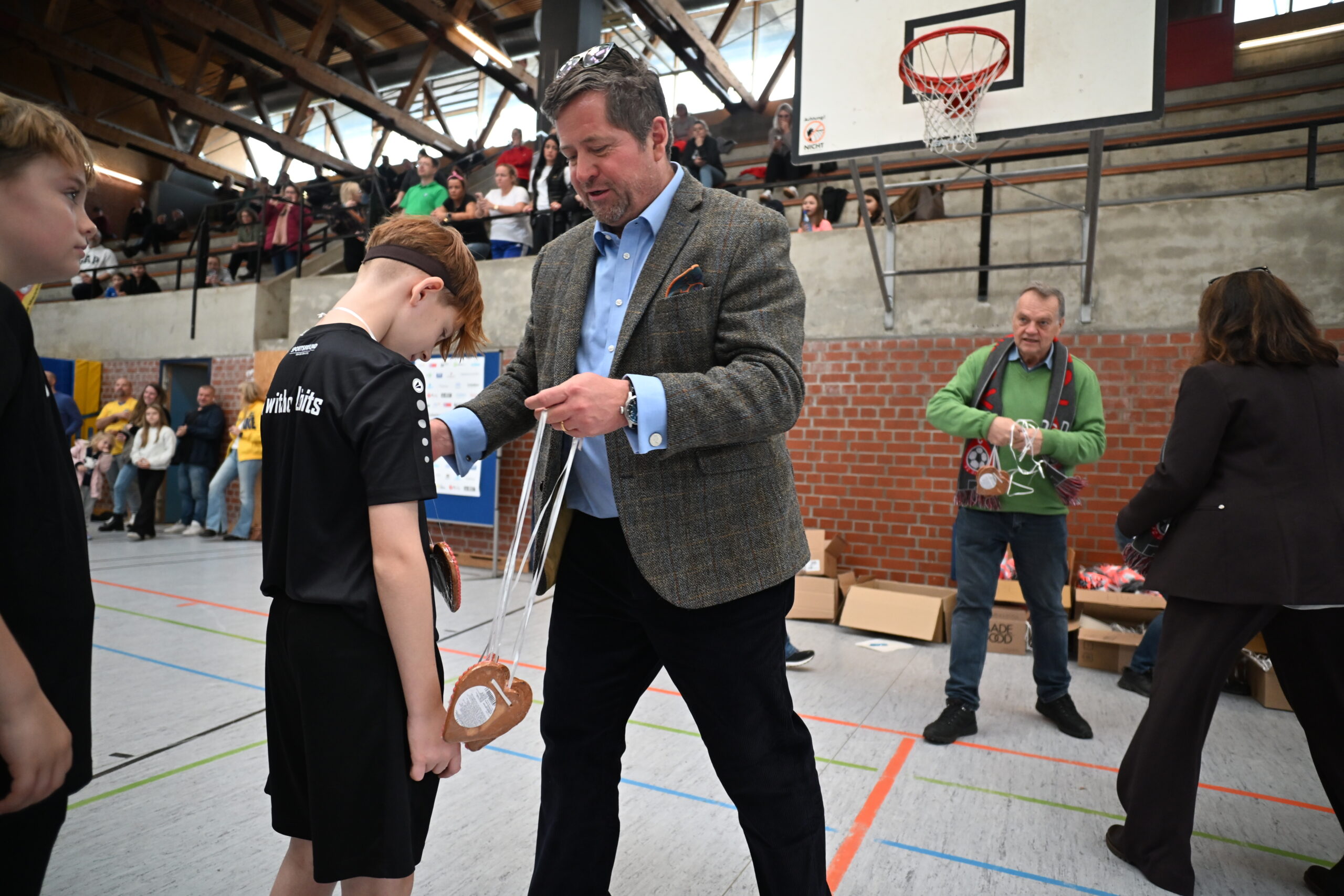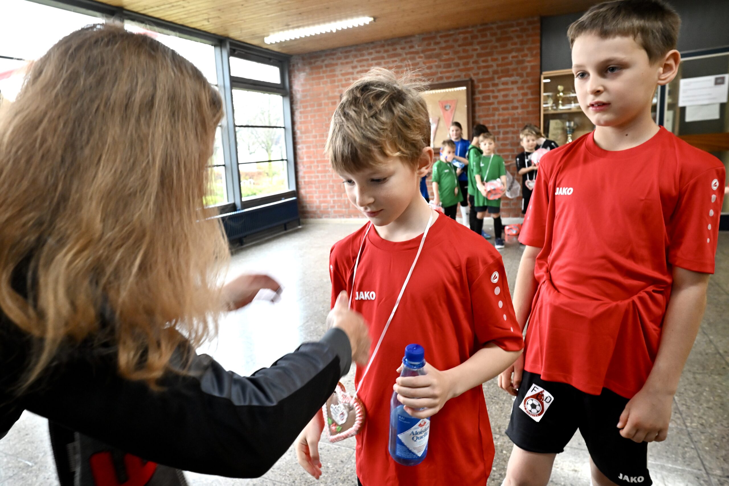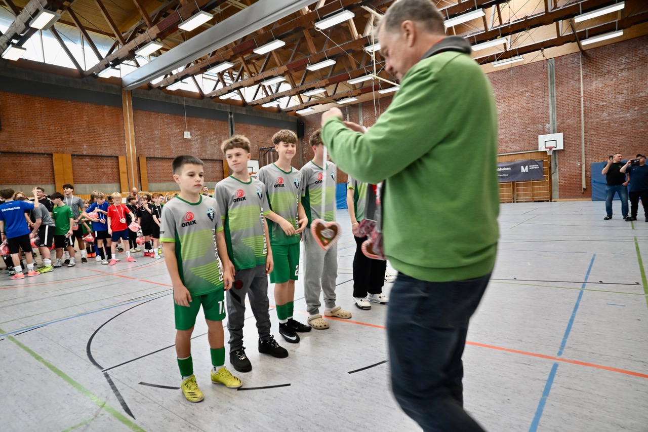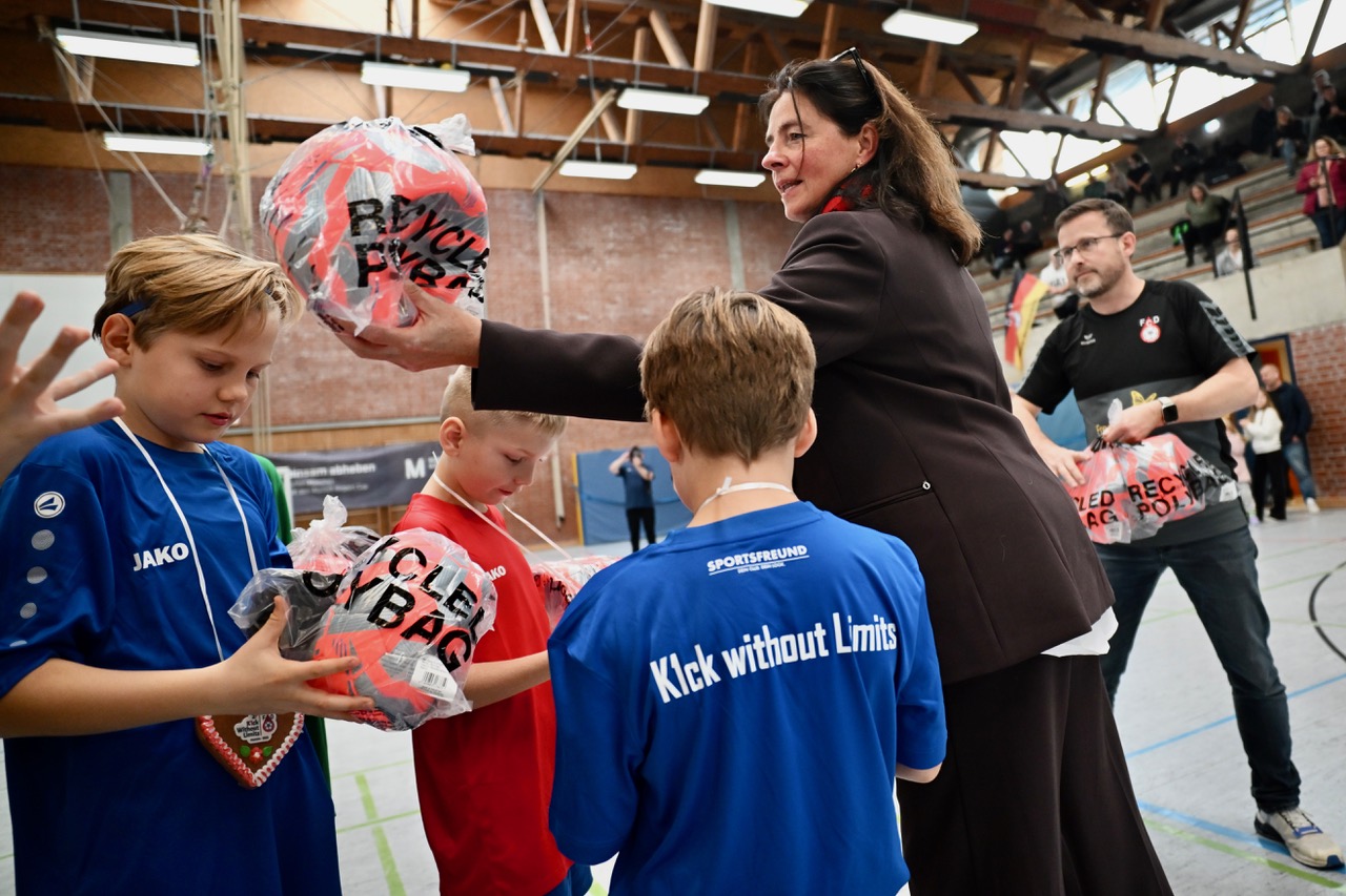 „Kick without limits – ihr seid alle Gewinner“, sagt Angela von Müffling-Tietscher vom Vorstand des FC Diabetes bei der abschließenden Siegerehrung. Die erfolgt in großen Teilen viersprachig, und statt einer Medaille bekommen alle Spielerinnen und Spieler ein Lebkuchenherz mit dem Turnierlogo um den Hals gehängt – von der Kinderdiabetologin Dr. Antonia Gavazzeni, von Robert Wäger, dem dritten Landrat des Landkreises Freising, und von Dr. Riccardo Giunta vom Rotary-Club München-Bogenhausen, einem der größten Sponsoren des Turniers neben dem Verein FC Bayern Hilfe e.V., dem Flughafen München und der Firma Ypsomed.